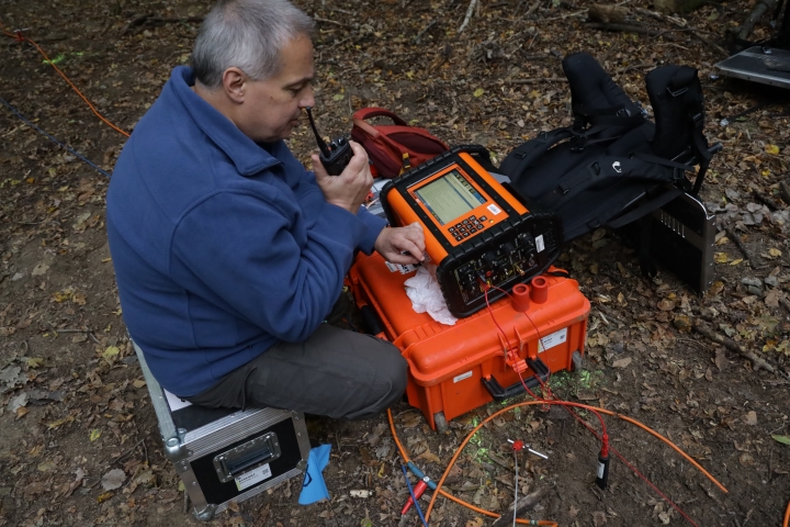 This marked the first field use of the new spontaneous potential equipment under electrical conductivity measurements. Active seismic and resonance seismometry techniques were conducted in a hybrid setup using the PTS nodal seismic data acquisition system.